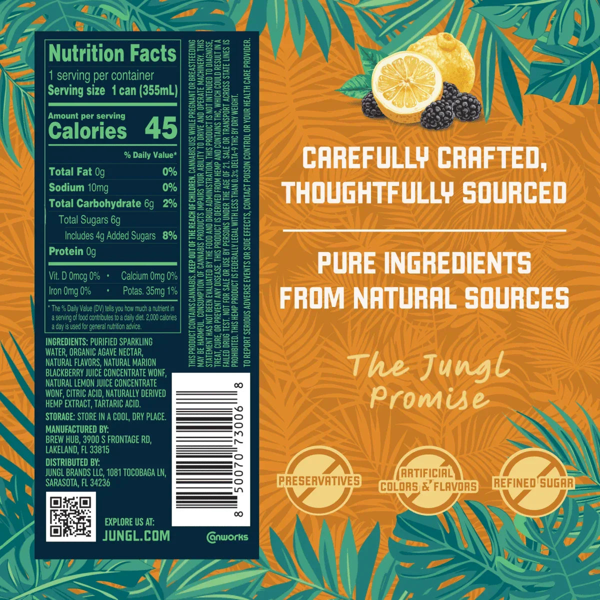Blackberry Yuzu is where bold meets nostalgic—rich, juicy blackberries perfectly balanced with the bright, citrusy edge of Japanese yuzu. Infused with 10mg of THC and 10mg of CBD, it delivers a fast-acting, lingering experience powered by JUNGL’s proprietary blend of naturally derived cannabinoids. A longtime fan favorite, this clean, refreshing drink is made with pure ingredients—no artificial sweeteners, seed oils, or synthetic dyes—just a smooth, steady rise in every sip.